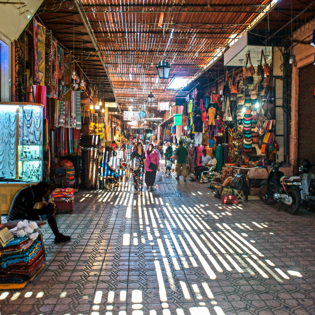you sip a glass of warm, sweet mint tea as you unwind and replay the experience of your day shopping in Marrakech. You remember walking through the marketplace filled with people and wonderful colors, sounds, and smells — a hive of bustling, purposeful energy!